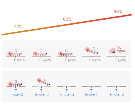 PNA Mutyper結(jié)合PNA Clamp以及Real Typer技術(shù),基于對(duì)Real-time PCR溶解曲線(Melting curve)分析,高效鑒別突變位點(diǎn)及突變類型。